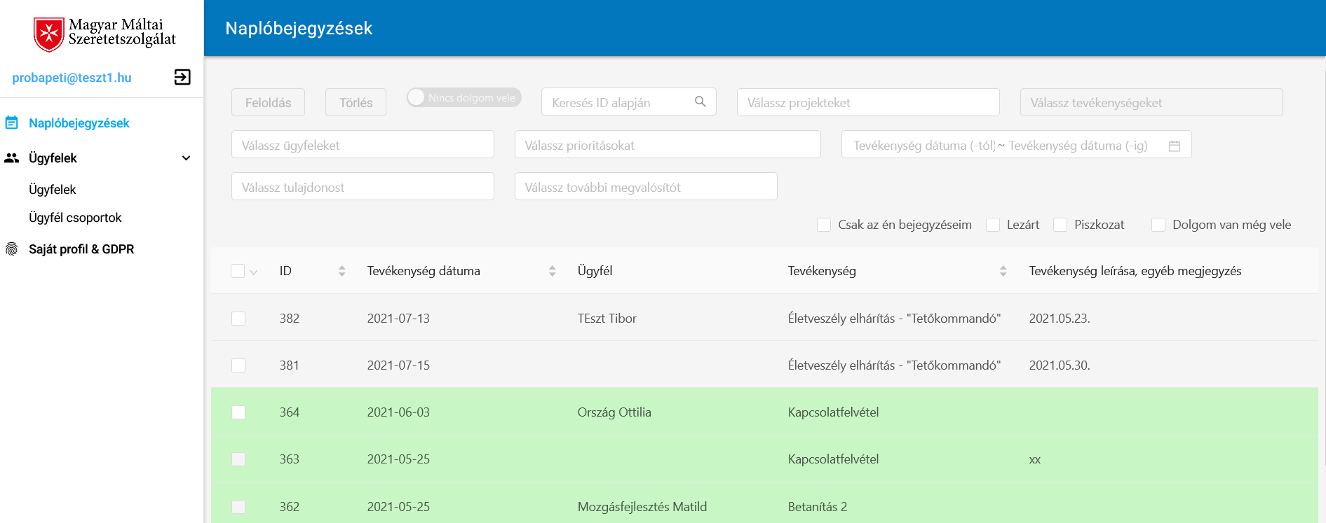 Ezen kurzusra bárki bármikor beléphet s áttekintheti a Tevékenységnyilvántartó rendszer használatát.